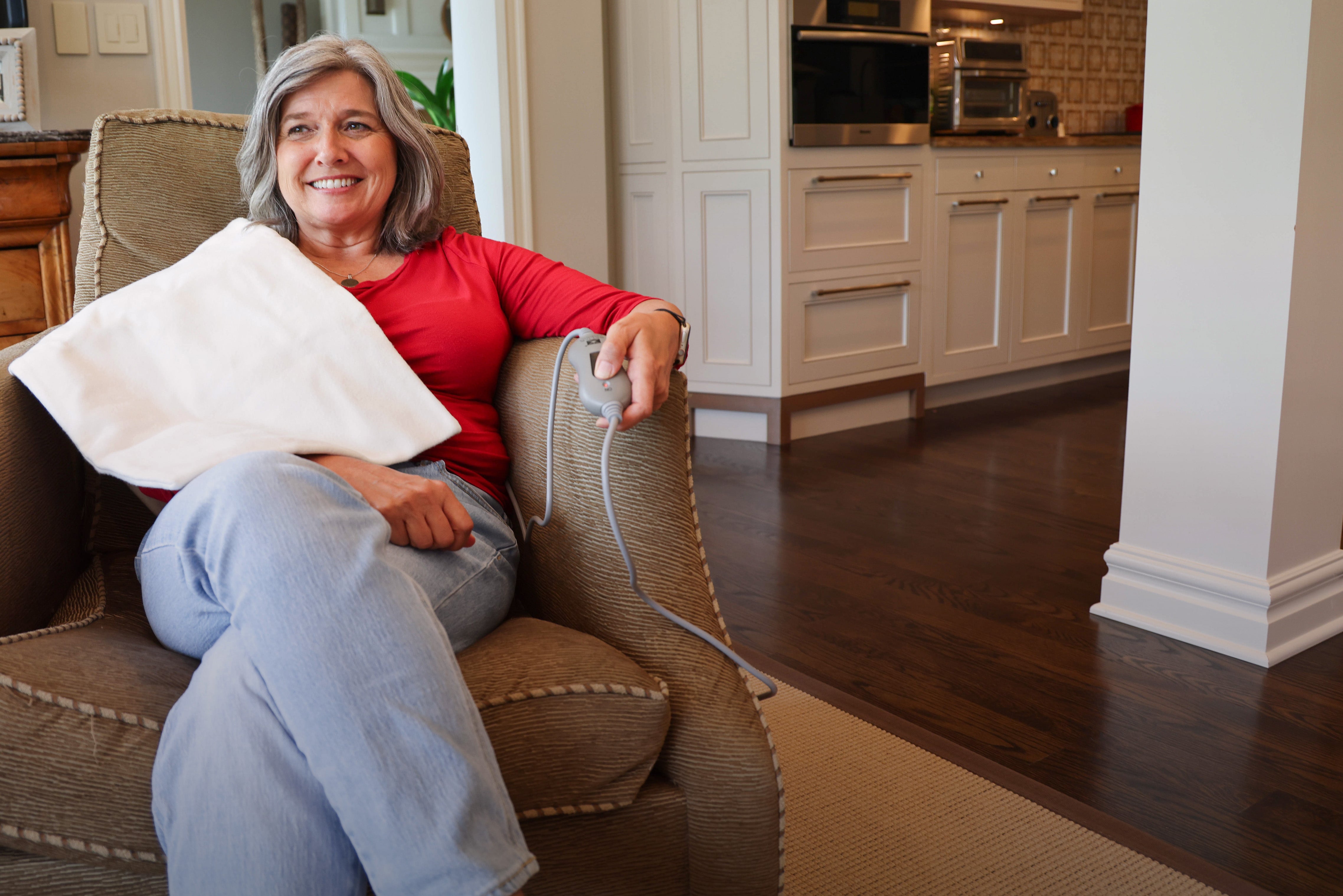 Penetrating, intense moist heat therapy increases blood flow to ease pain, reduce stiffness, and improve flexibility.
